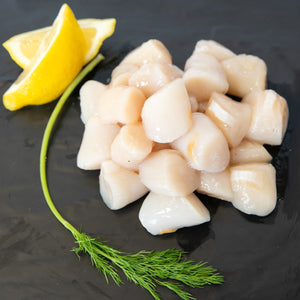 Nantucket Scallops are a seafood delicacy! They are much smaller than Sea Scallops, great raw, marinated as a ceviche or lightly sauteed.